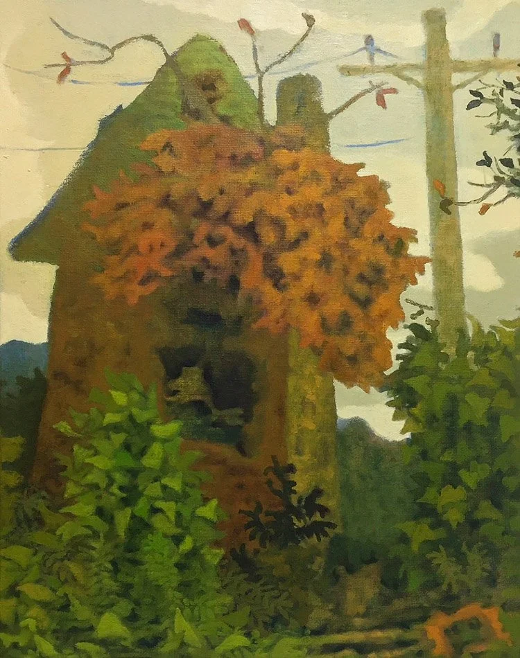 There’s hills, sometimes very steep hills. The weather is temperamental; I always think of it as kind of moody. I think this nature lends itself to painting because there is a lot of texture here, a lot of movement, it’s very dynamic. It’s an older place; there’s still quite a bit of old buildings and some of them are occupied and falling apart. I’ve been a visual daydreamer ever since I was a kid. It was easy to get lost in staring out the window, in elementary school, at the trees because there were so many trees right there. The sky and the leaves on the ground -it’s easy to get lost in all those things. I started doing that when I was a kid and haven’t stopped.