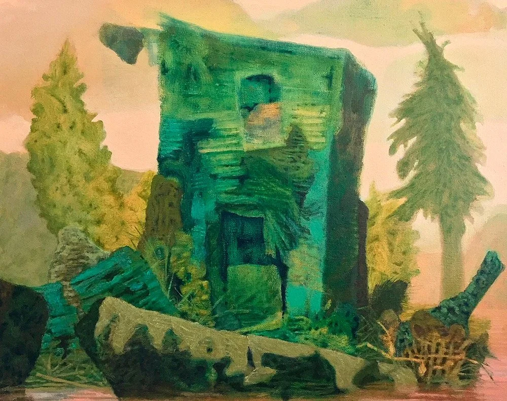 I’m reminded of Caspar David Friedrich -his interest in painting the gothic ruin. I don’t look at that ruin as a matter of fact, but that he is creating an entire ethos or mood around an environment that looks partially rendered, accurately, and partially made up. I feel like your work has an American...I was almost going to say gothic!