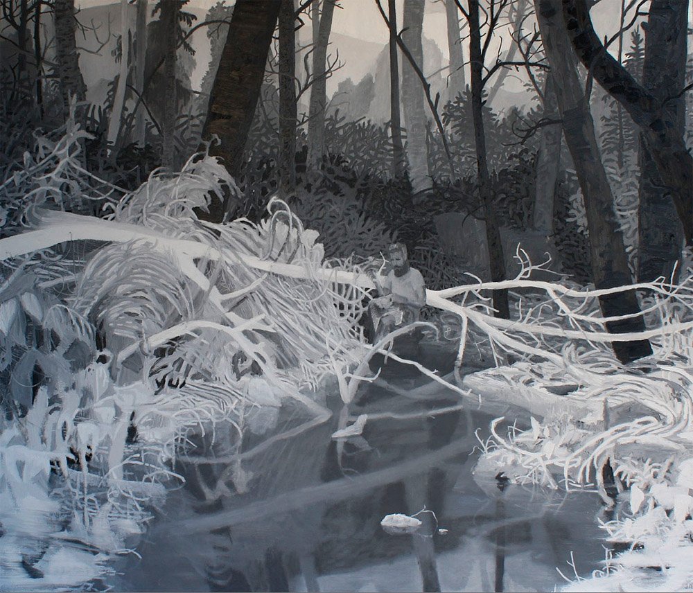 So I started working from pictures that were of Pittsburgh or South Carolina, which reminded me a lot of the Pittsburgh area with the tangly growth.