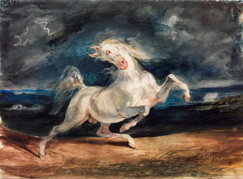 Eugene Delacroix, Horse Frightened by Lightening, Watercolor, 1824